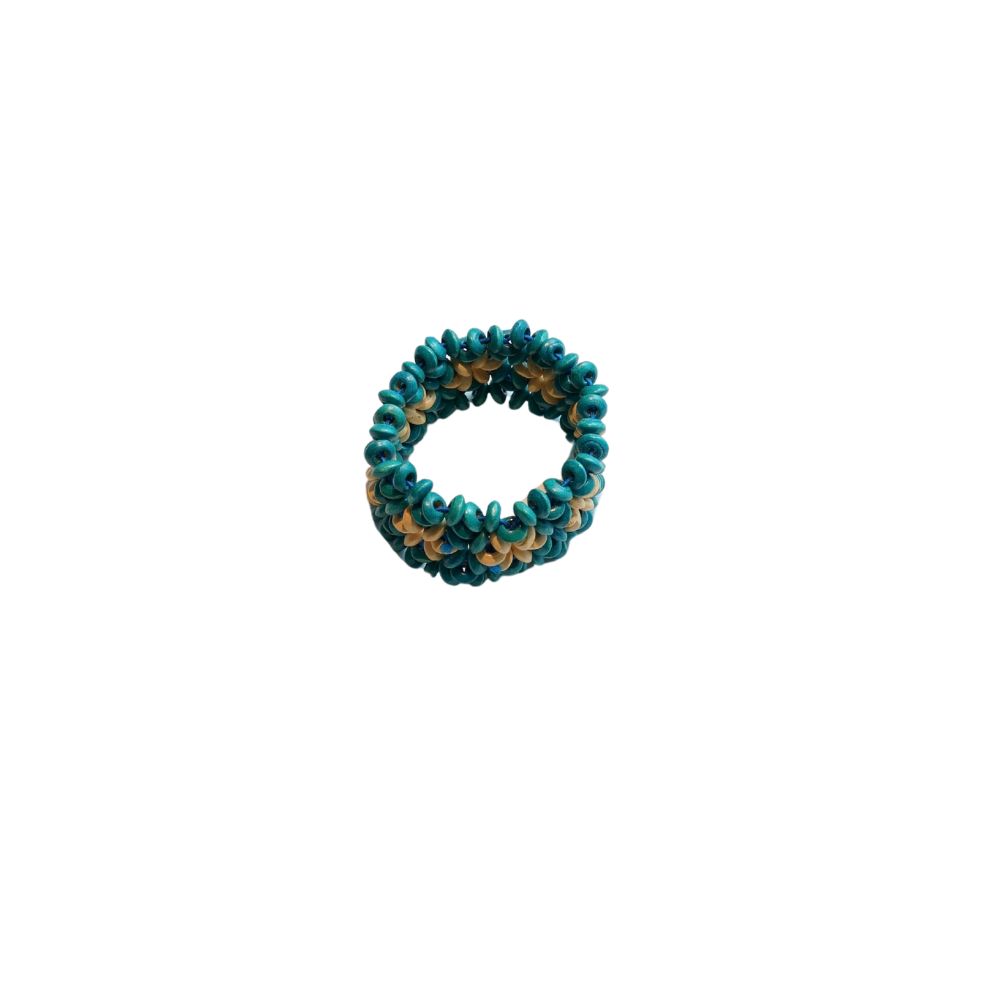 This stunning hand-carved wooden bracelet showcases a beautiful combination of rich teal and warm gold tones, creating a striking visual contrast. Each piece is meticulously hand-carved by skilled Ethiopian artisans using traditional carving techniques passed down through generations. The intricate carved beadwork features a distinctive pattern where teal and gold elements alternate in perfect harmony, demonstrating exceptional craftsmanship and attention to detail. The vibrant teal represents tranquility and natural beauty, while the gold accents add warmth and elegance. Made from sustainable carved wood, this bracelet combines environmental consciousness with stunning aesthetic appeal. Perfect for those seeking meaningful, one-of-a-kind jewelry that celebrates Ethiopian cultural heritage. The comfortable, lightweight design makes it ideal for daily wear while the unique carved patterns ensure it serves as a beautiful statement piece. A meaningful accessory that supports traditional Ethiopian artisans while adding authentic African flair to any wardrobe.