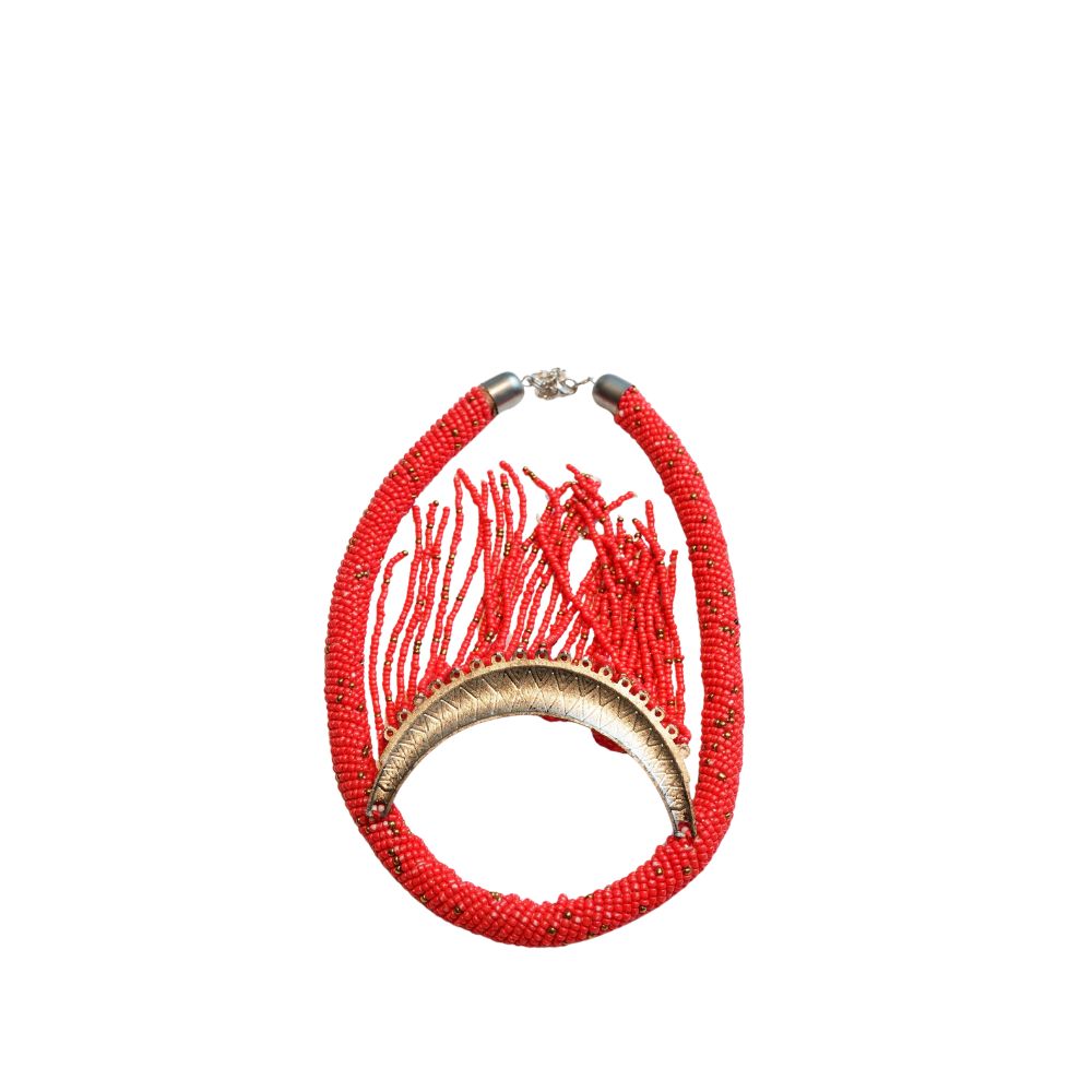 A striking handmade nickel collar featuring dramatic black fringe detailing, showcasing traditional Ethiopian artistry. This piece captures the essence of Oromo women’s ceremonial jewelry with its bold design and quality craftsmanship. The fringed elements add movement and cultural authenticity, making it a statement accessory.