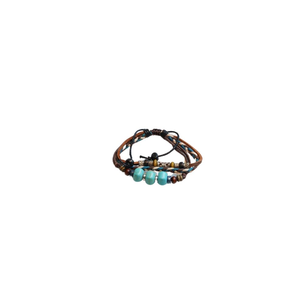This beautiful unisex bracelet combines earthy brown and teal leather strands with striking turquoise stone beads and bronze metal spacers, creating a naturally soothing aesthetic. The design features multiple leather cords woven together and adorned with three prominent turquoise gemstone beads complemented by ornate bronze spacers and small metallic accents. The adjustable tie closure with its organic knot detail ensures a comfortable, customized fit for all wrist sizes, making it truly universal and gender-neutral. Turquoise is renowned for its calming properties and protective energy across many cultures, making this more than just a beautiful accessory—it’s also a meaningful spiritual piece. The combination of natural leather with semi-precious turquoise stone creates an authentic bohemian aesthetic that complements casual, boho, and even semi-formal styles effortlessly. Perfect for those seeking meaningful, expressive jewelry that celebrates individuality without conforming to traditional gender boundaries. The durable leather construction ensures longevity with daily wear, while the striking turquoise beads make it a conversation-starter. An excellent choice for self-expression, spiritual connection, or as a meaningful gift for anyone in your life.